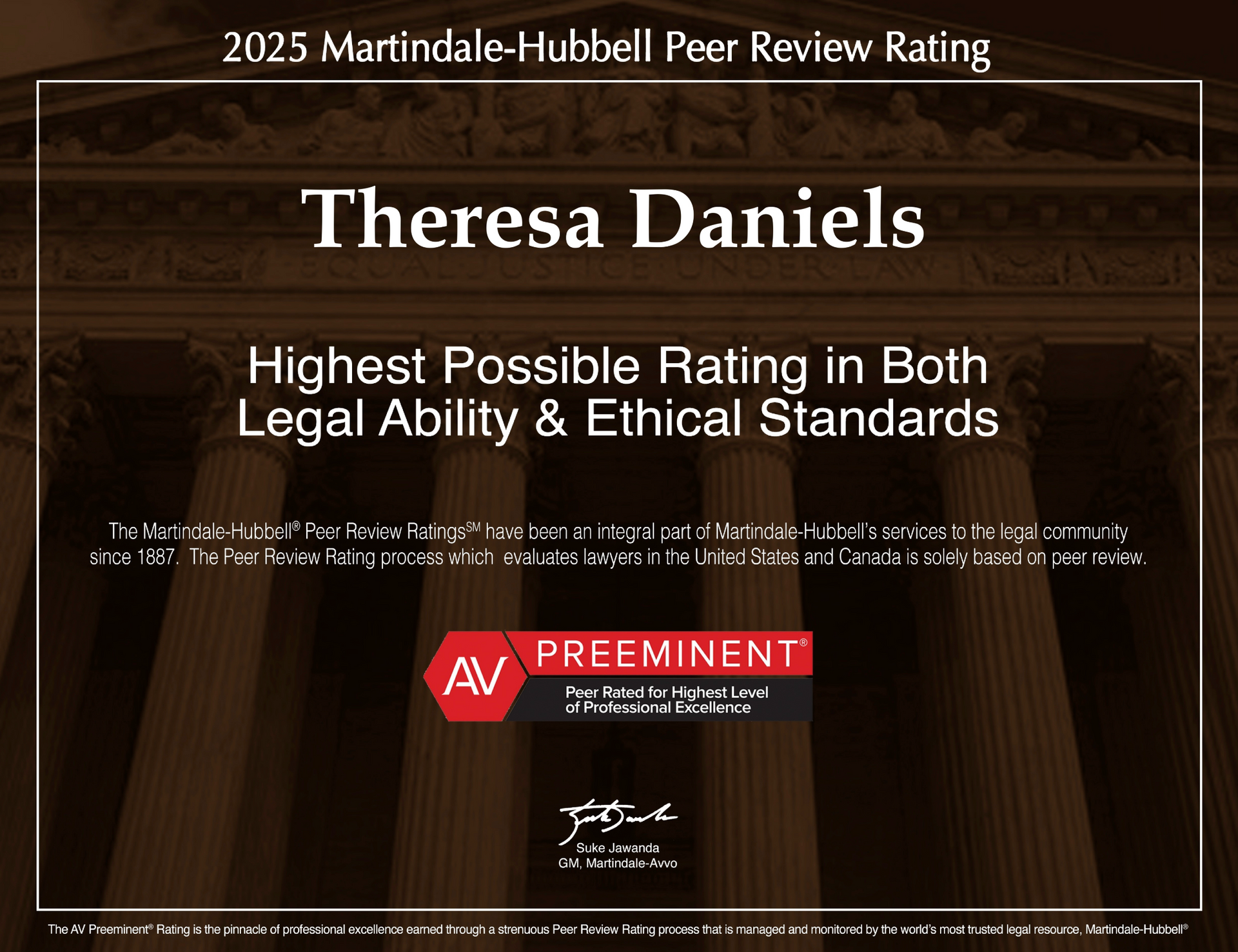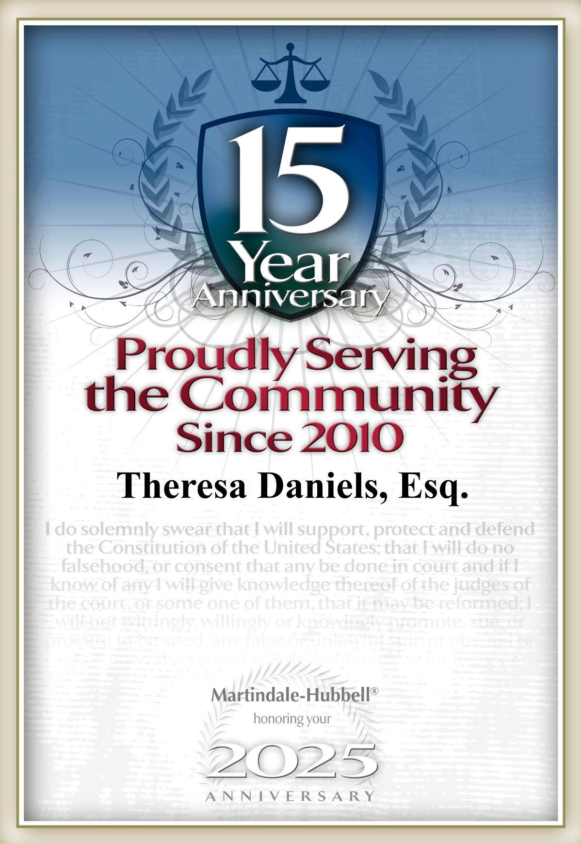 With 16 years of practice in Florida, Theresa Daniels offers proven experience and direct access to your attorney. Clients appreciate knowing their questions are answered by the person handling their case.